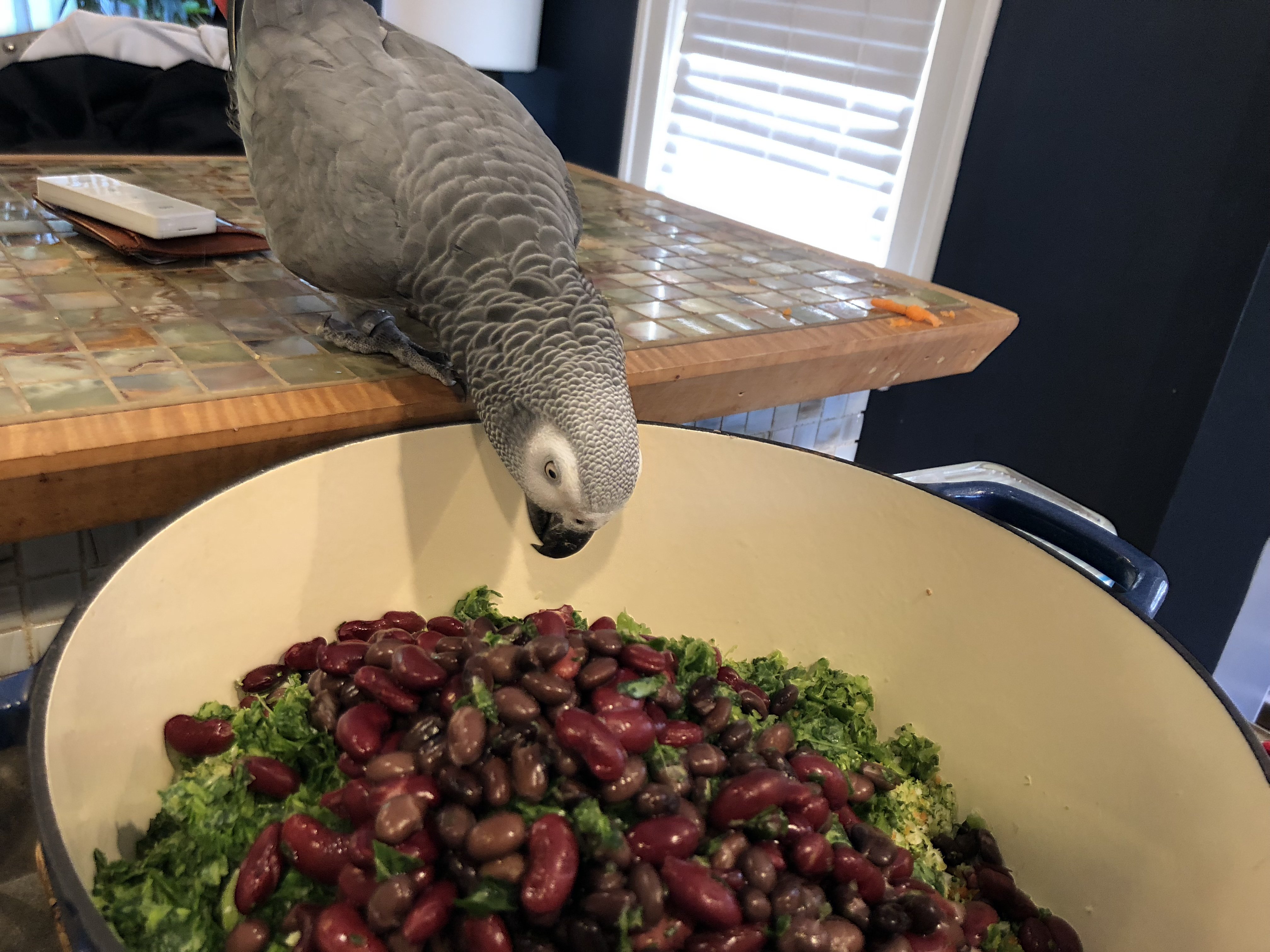 Timbersmom Posted March 14, 2018 Posted March 14, 2018 Timber is extremely picky. You may remember my experiments and failures with every pellet made. After Timber's seizure issues and his weight loss, what is in his bowl is pretty much whatever he will eat. Daily, he gets nutriberries, quality seed mix, a piece of avicake. In his "people" food bowl, he has mashed sweet potato, peas, pinto beans, hamburger, mac and cheese, and cooked Higgins rice mix. He has sweet peas on a skewer, and usually has corn on the cob or an artichoke to mess with. He eats dinner with us, whatever he can (or will) eat safely. He usually has a small (maybe 1/16th slice) of toast with a little peanut butter at breakfast time. I'd love to improve his diet a bit, but he won't eat birdy bread or any chop I've tried (or pellets or any other vegetables etc. etc. etc.). He gets a chicken wing bone every week (sometimes he will eat it, sometimes not) and a piece of boiled egg fairly often. He eats a bite of banana with dad occasionally, but really isn't a fruit eater. As a treat (like most of his diet isn't already a treat) I give him a cashew, an almond, and a couple of peanuts in the evening. Oh, I almost forgot the cheese... He gets a very small piece of sharp cheddar cheese a couple of times a week. I'm sure there are other things I'm forgetting, but those are the staples! 2 1