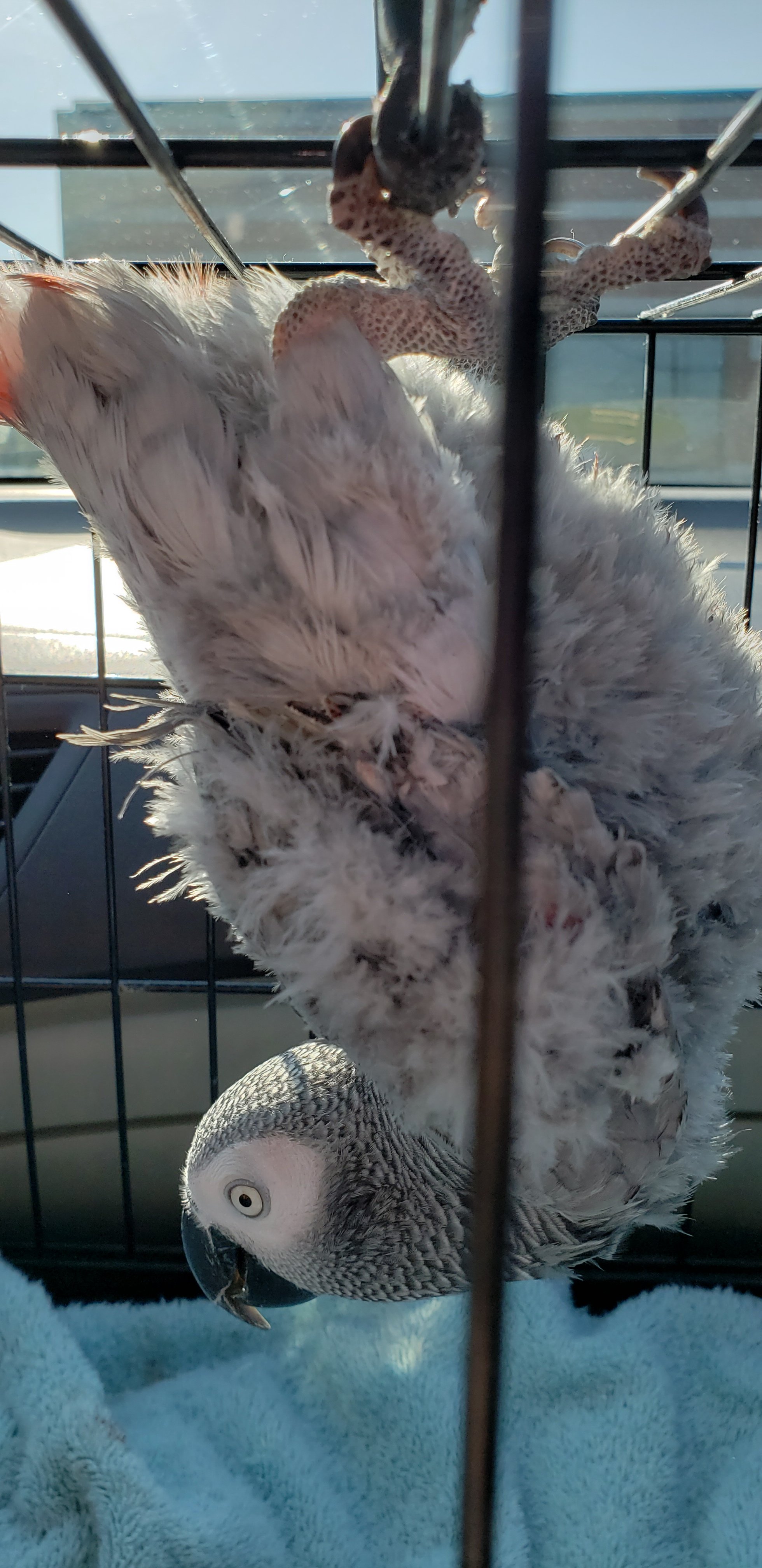 Deb Tegu Posted May 28, 2018 Posted May 28, 2018 (edited) My husband (CT Gull) and I rescued an almost 5 year old Congo Grey. After spending most of the first 24 hours at the vet's, she/he is slowly acclimating to our home. This is a big feat when you find out we have 3 other parrots, 2 rescued dogs, 2 rescued cats, 7 snakes, 1 gecko, 1 frog, 1 bearded dragon, 1 Cuban Rock Iguana, a Bearded Dragon, and a frog. The perils of bringing up 3 kids who also love animals. I had the vet do some blood work on Piper which shows some very elevated levels for Potassium, Liver components though functioning is normal, and a couple of tests that I'm unsure of. The parrot was on a seed and nut diet only. I don't think see ever got any sunlight or vitamin D. We have already started her on a pelleted diet and will be adding in freeze dried vegetables to it as well. I am looking for any holistic remedies I might also use as well. I heard about Milk thistle extract at the Aviculture summit that was held in CT last summer. However, I think that was for respiratory issues which Piper doesn't appear to have. Originally, the vet was talking about her going on medication to help with the feather plucking. I have decided against that due to the levels being out of whack. Any help or recommendations would be greatly appreciated. I am attaching a photo I hope so you can see how she looks. She loves to hang like a bat and bop to music. Very funny bird. You can read more about her at my husband's posts (CT Gull). Edited May 28, 2018 by Deb Tegu 2 1