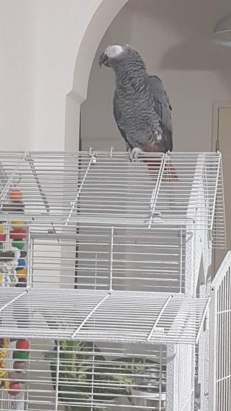 Alex Posted June 27, 2018 Posted June 27, 2018 Hello everybody. Nice to find so many people in the forum! I am new Grey owner; I got my new friend just two days ago. He is around one year old and his name is Riko. Previously a kid used to have him, but now he moved abroad to study and the parents couldn't keep him, so they had to sell him. I must admit, I am bit surprised with that bird. I think I was more scared than him when I first brought him at home. Ι was hesitant to bring him out of the cage, not to mention to feed him. But straight away, he took seed from my fingers. I opened the door, he came out and sit on top of the cage. Today I noticed when I approach him to the cage, we comes close to me and makes some weird sounds like puffing and blowing, opens his wings, moves his head up donw and he pretensed he bites my fingers, but although my finger goes in his mouth almost completely, he does not apply pressure at all. Also I noticed that during these weird moves, sometimes he is regurgitating some seeds. Is all this normal to be so easy going straight from the beginning? Could you explain this weird behaviour when I go close to the cage - is it normal or should I get worried? I forgot to mention that I keep him in the same big cage he used to be before. I am planning to go to the vet tomorrow maybe for a basic check up cause the kid didnt give me any info about his health - any advice what to check? I attach a picture of him. It seems he is sleeping on the cage, though he is talking like hell (while sleeping?) :-) Thank you all in advance. Glad to join the group! 2 1