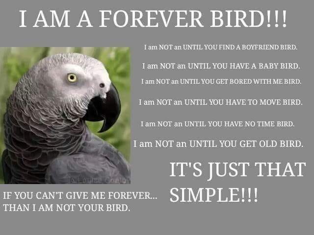 Greytness Posted July 19, 2018 Posted July 19, 2018 I love this! Am going to copy/paste it on another forum that's seeing an uptick in people looking to rehome their birds for absolutely ridiculous reasons. 2 1