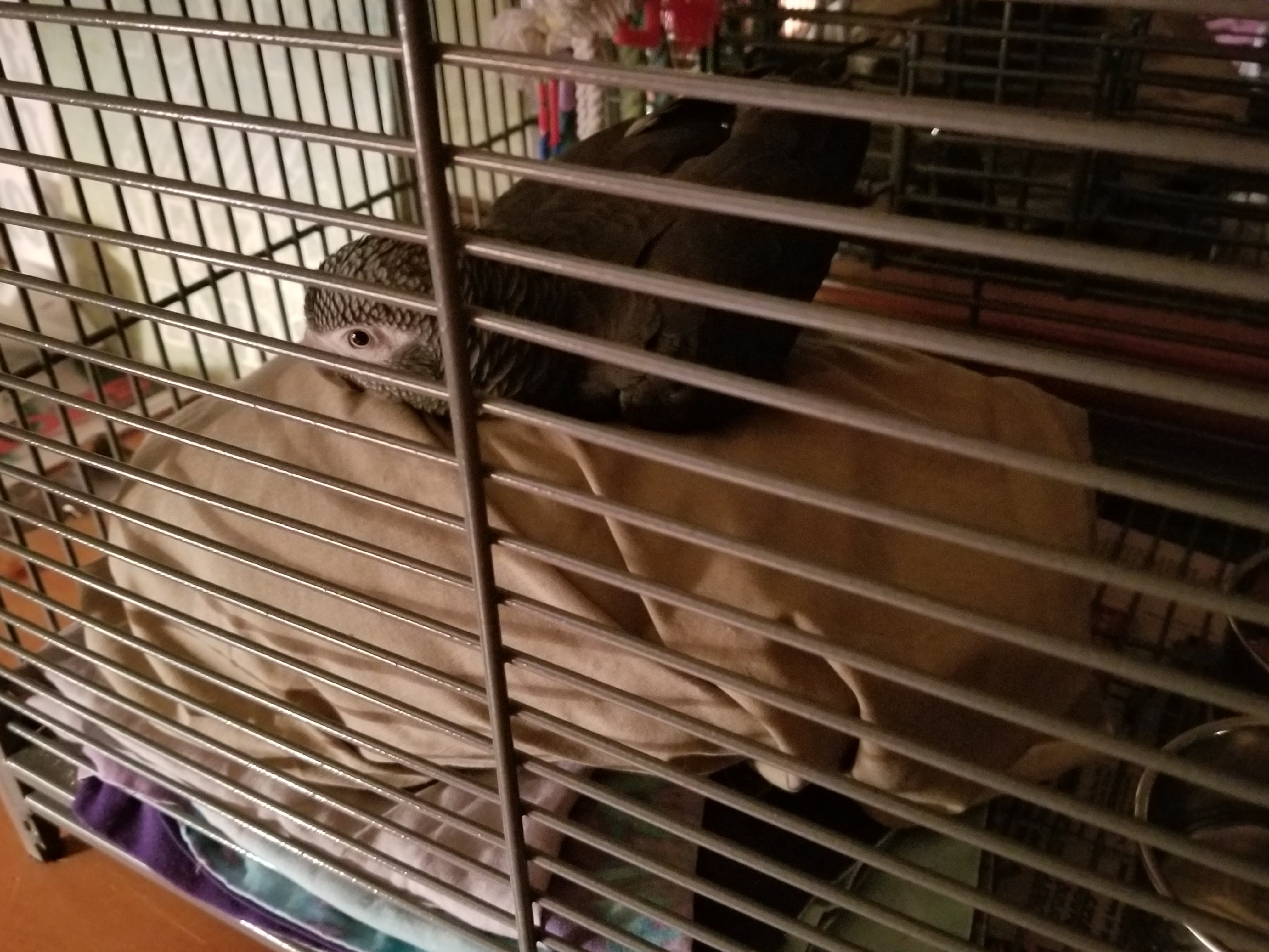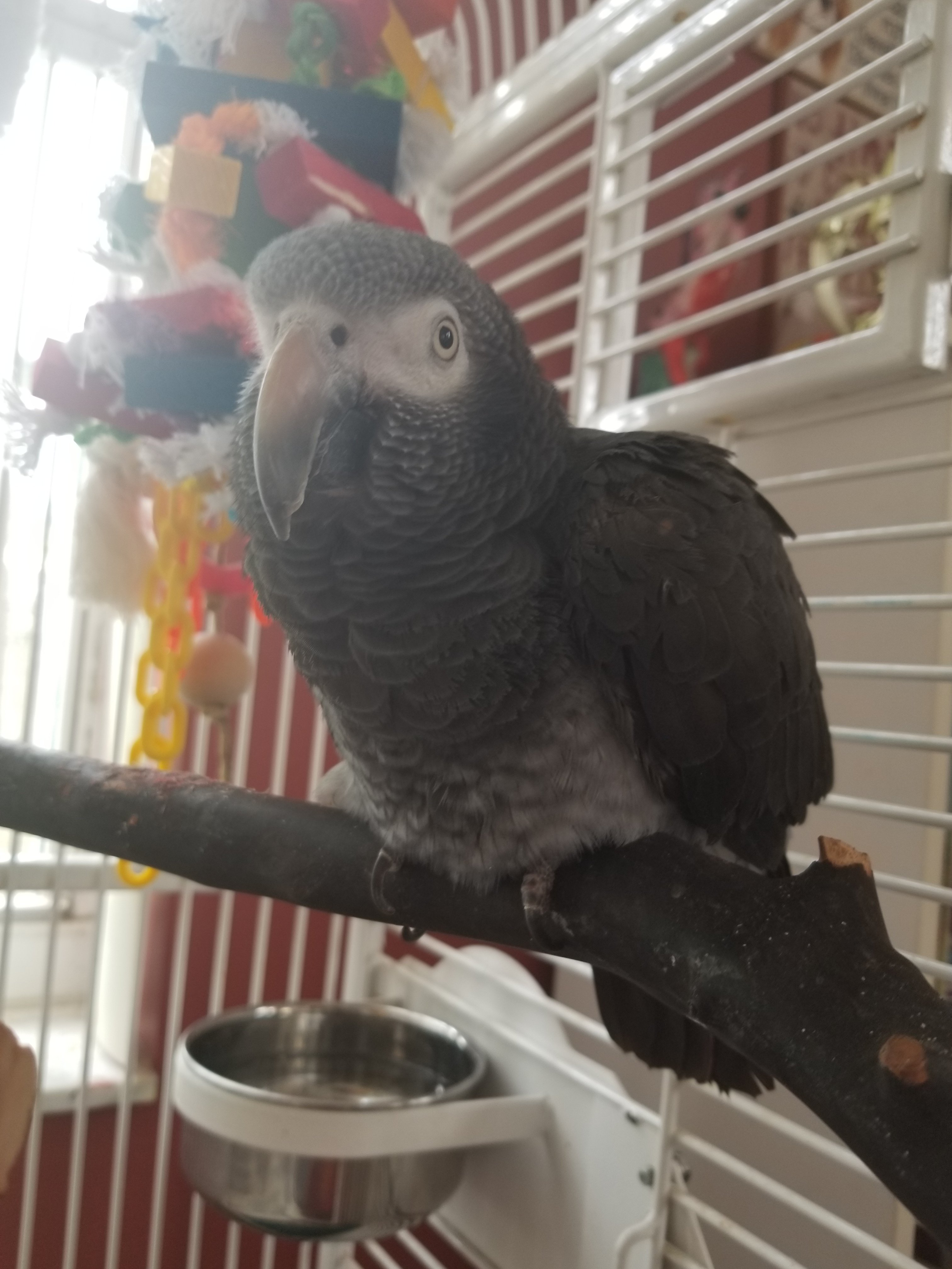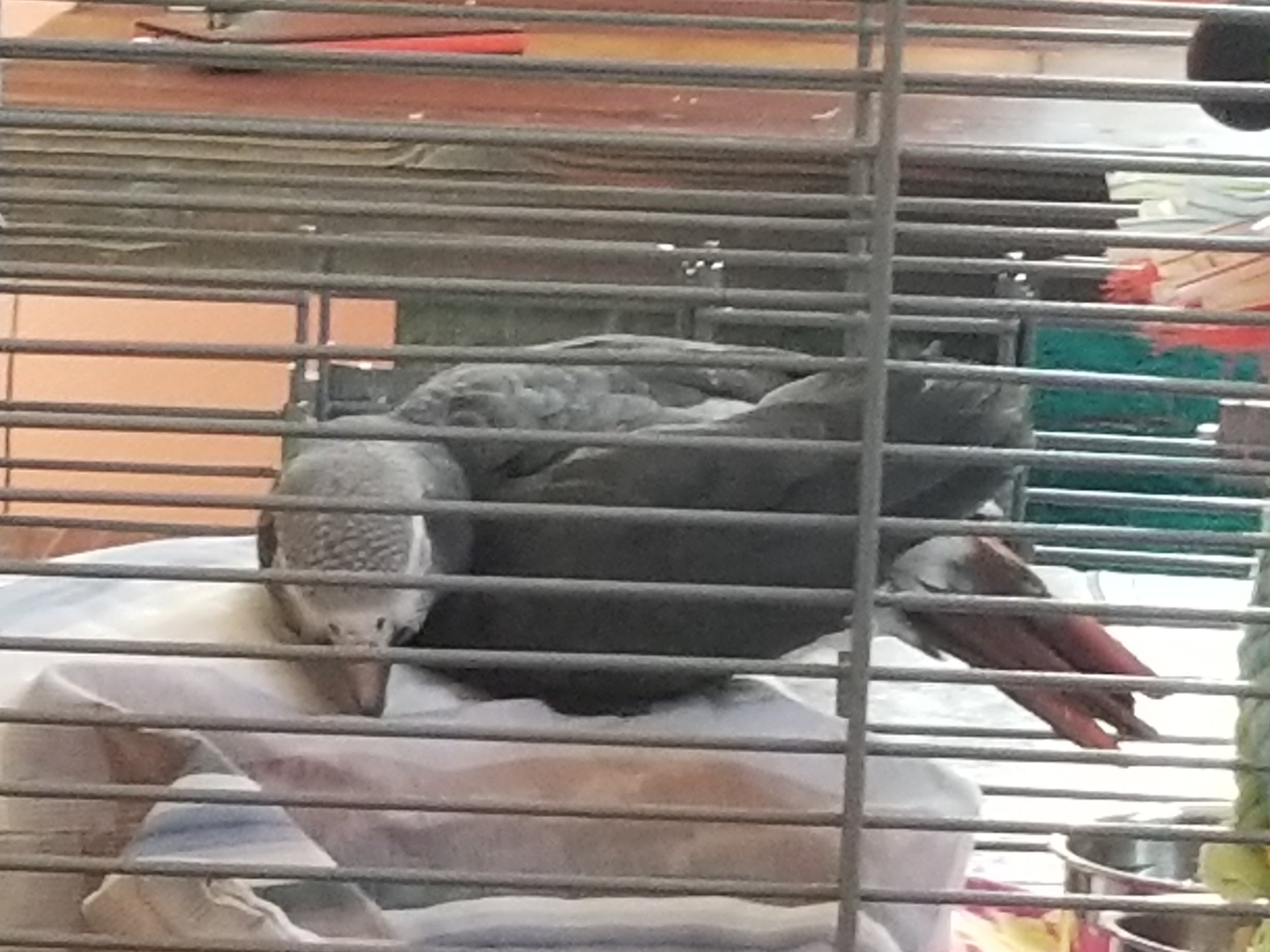 TimnehAGLove Posted October 2, 2018 Posted October 2, 2018 (edited) Hello All, I am new here with a 16 year old Female Timneh Grey. We rescued her a month ago, and have seen some recent new behavior. Everywhere she sits she fades out or melts or hunches or slouches over after a few mins on a perch or your shoulder or your finger or anywhere she sits. She basically is sitting on her tummy with her feet pulled under her and not upright. Sometimes she hunches so far over her head is lower than her tail. On her perch when she tries to sleep she "melts" forward and then wakes up and catches herself. Sometimes she sleeps with her head turned back in her feathers like normal and and she is fine that way. We look her to the Vet, she did an exam and took a blood test and did a yearly check-up and they said that she had a bacterial yeast infection and gave me an anti fungal and a pain killer to give her. The vet said that she also may have hurt her foot. This was 2 weeks ago, and things have not gotten better. Her balance is terrible, and sometimes she falls off her perch. We moved her into a smaller cage where she is sleeping at night, so that she cannot fall down too far off her perch, and we put a pillow under the perch in her night cage and a towel under her large cage that she is in during the day. Here is a video of her in her day cage : https://streamable.com/2z57k She is eating fine and her poop is fine...She is talking, playing, climbing, taking a bath and acting fine otherwise. I am really stumped and concerned that something is terribly wrong with her. We have a follow up Vet appointment on Friday. Has anyone ever seen this type of posture / behavior? I have attached some photos of her in her smaller night cage. I also have a video I can upload in a little bit that is her in her larger day cage. When I took these photos there were no perches for her to stand on. Just added a couple of pictures of her slouching on her perch in her large day cage. Edited October 2, 2018 by TimnehAGLove 4