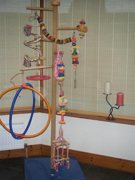 I made 2 playstands for my birds out of PVC pipe and dowel rods. They are great! East to move, clean, and change to make more interesting. Very low cost to make too. I originally bought a stand from a pet store made w/ PVC and it was $50 (marked down from $100). Crazy price for something you can make yourself. Just wish I could find more food cups that fit right into the pipes. Always good to have extras. I am always up for new ideas too.
