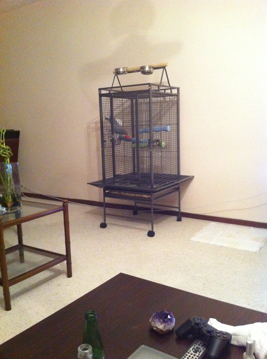 katana600 Posted May 1, 2011 Posted May 1, 2011 We got Gilbert's new cage yesterday. His is on the left, Java is on the right. I am still cleaning up, moving the power strip now that he will be able to climb all over. Java is a lot smaller, but she thinks she is big bird and I couldn't very well get a smaller cage for Gilbert. I am working on moving the little porch shelves and perches as I see how he gets around and where he prefers to play.